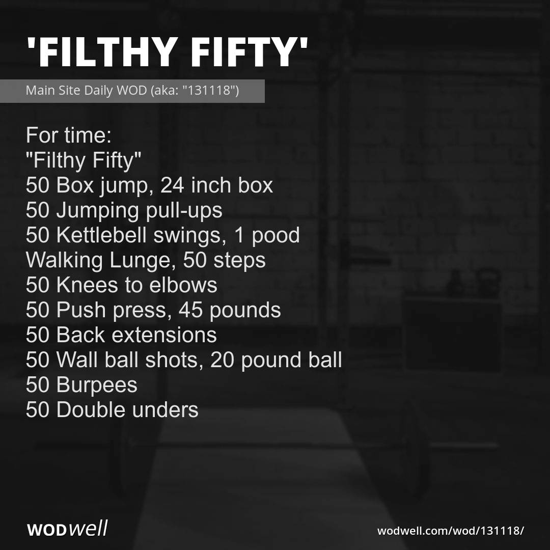 Double kettlebell swing technique and applications by mike. How to properly perform and teach the kettlebell swing featuring mike boyle duration. Filthy fifty is a popular crossfit chipper style benchmark wod that has been posted on the crossfit main site many times since its first appearance in 2005 but never as of 2019 actually with the name filthy fifty that name came from the crossfit community and is now well known among crossfit athletes and gyms.
