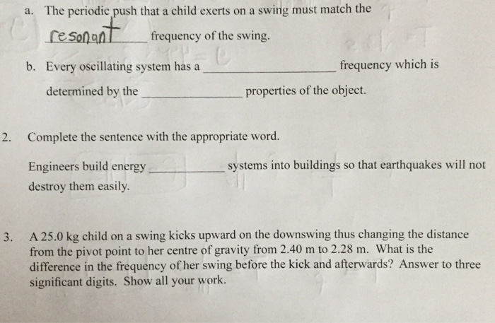 Solved The Periodic Push That A Child Exerts On A Swing M