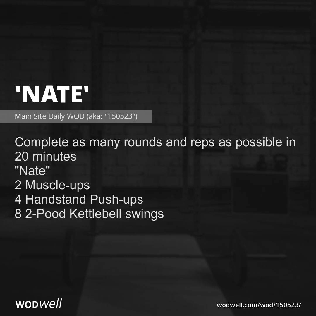 8 2 pood kettlebell swings scaling the nate hero wod is a triplet which contains several high rep gymnastics movements at what will be a high volume for experienced athletes who perform many rounds.