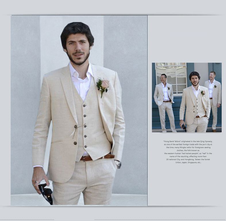 Summer Beige Linen Beach Mens Suits Wedding Suits For Men 2018
