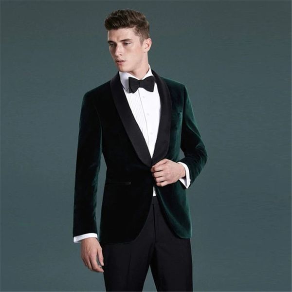 Shawl Lapel Groomsmen Dark Green Velvet Men Suit Groom Tuxedo Prom