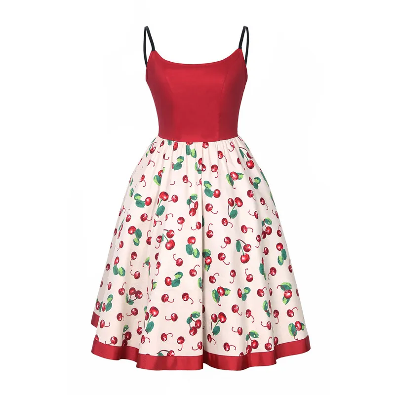 2017 New Vintage Prairie Chic Girls Cute Cherry Print Full Circle