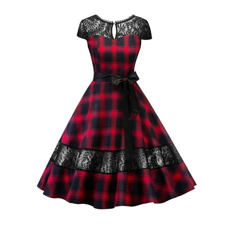 Sexy Dance Vintage Dresses Women Rockabilly Lace Plaid Backless