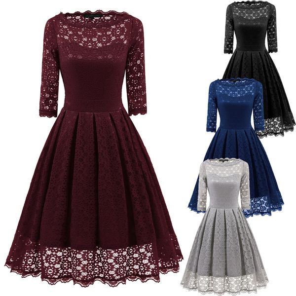 Women 50s Vintage Lace Swing Dress Cocktail Evening Party Retro