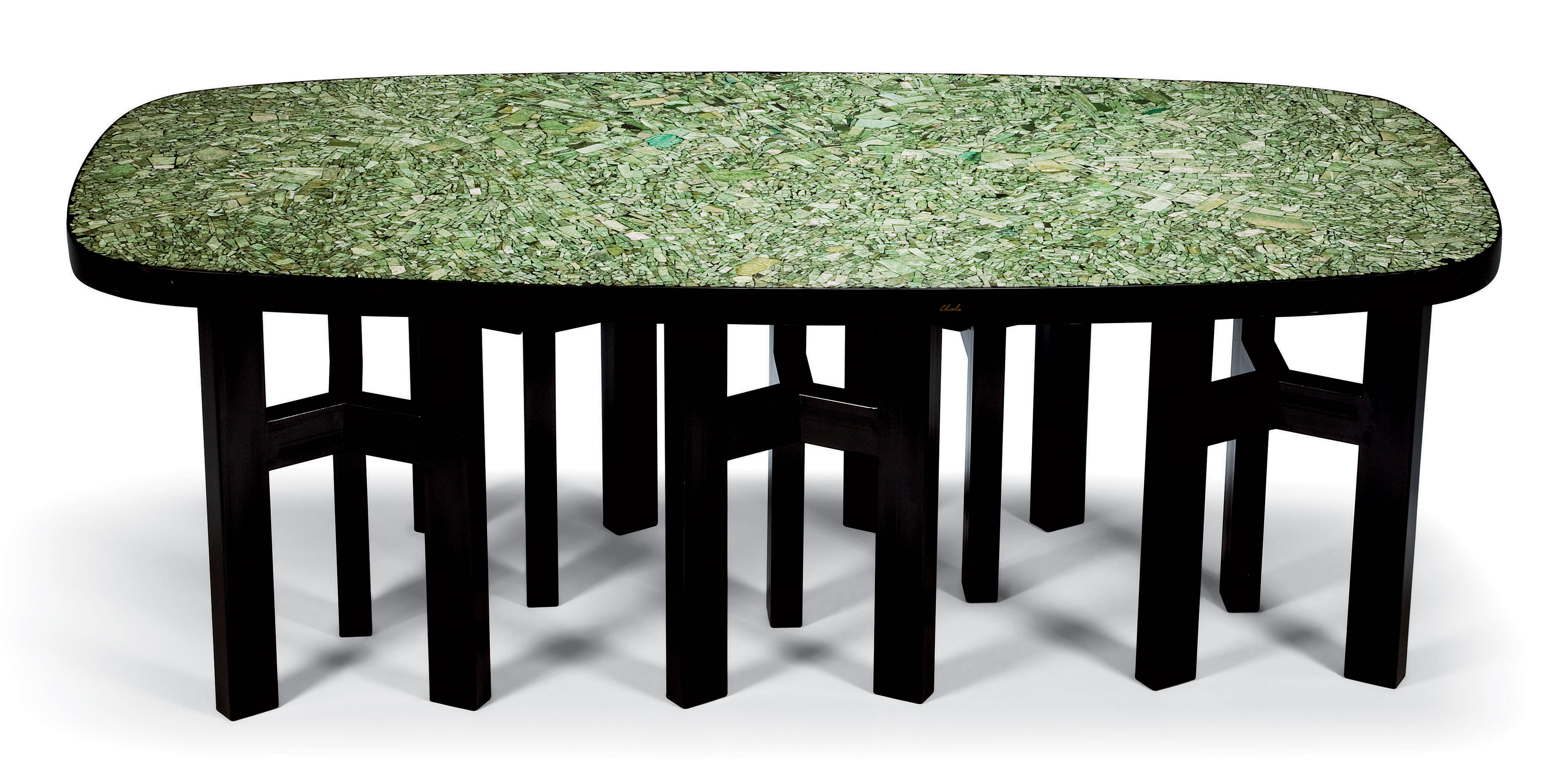 Sculpted Star Base Dining Table With Floating Glass Top Circa