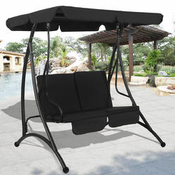 Metal Garden Swing Bench Black Modern Outdoor 2 Seater Chair Patio